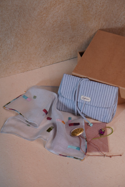 Drishti and Rashmick met while pursuing a postgraduate degree in Environmental Studies and Resources Management. They have worked in remote water-stressed Indian villages and on sustainable agricultural and zero-waste projects, a green past that’s sewn into the hems and whispered into the pockets of the contemporary clothing they curate at Lafaani.