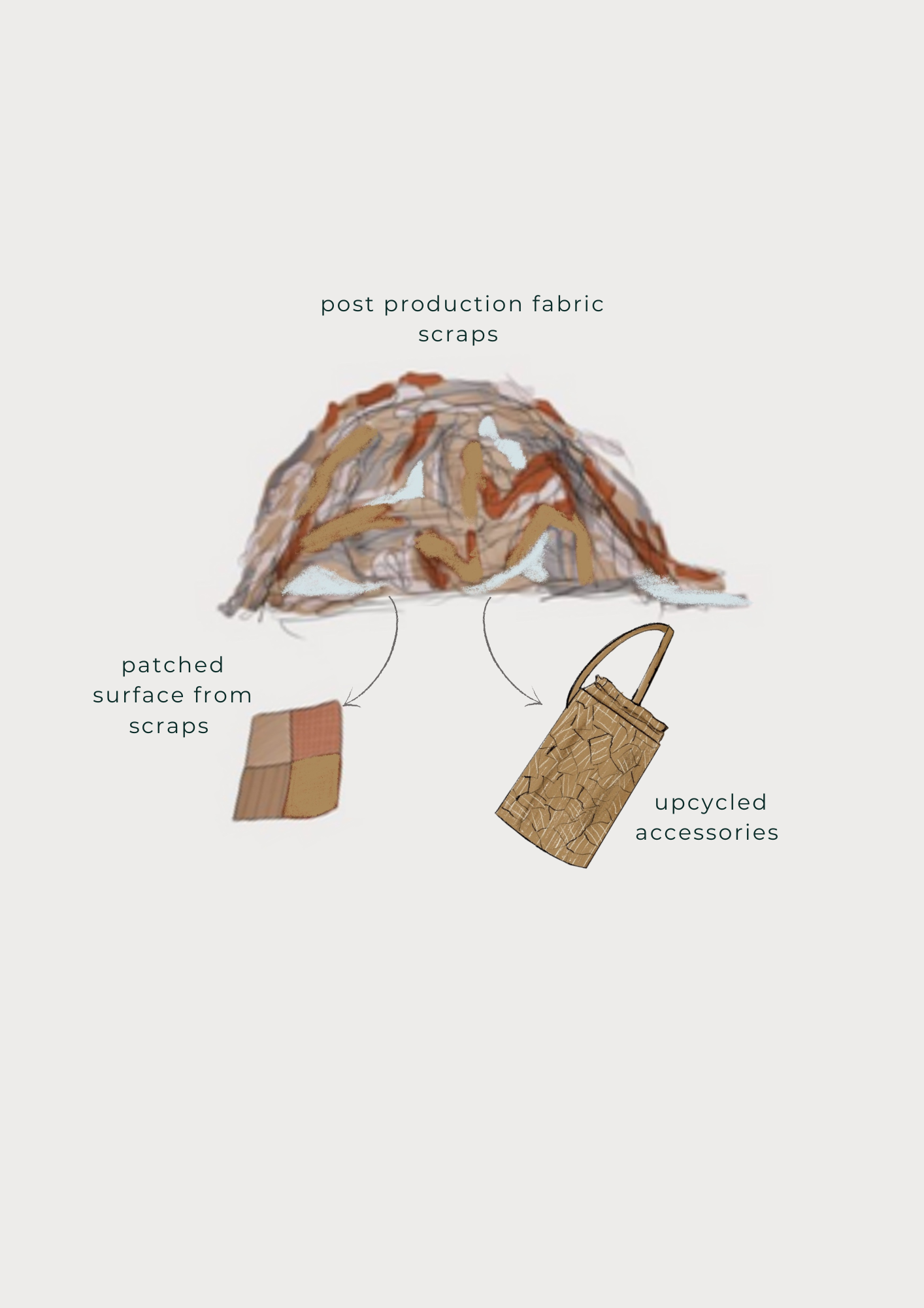 All pre-retail fabric waste is repurposed into our 100% upcycled accessories.