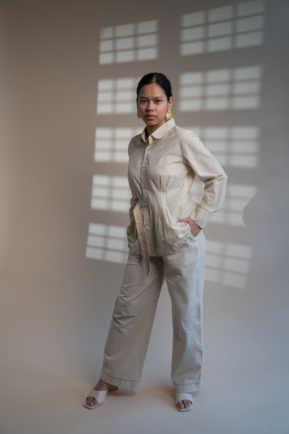 This Dawning Belt Shirt comes in a calm and soothing colour that we call Kora.