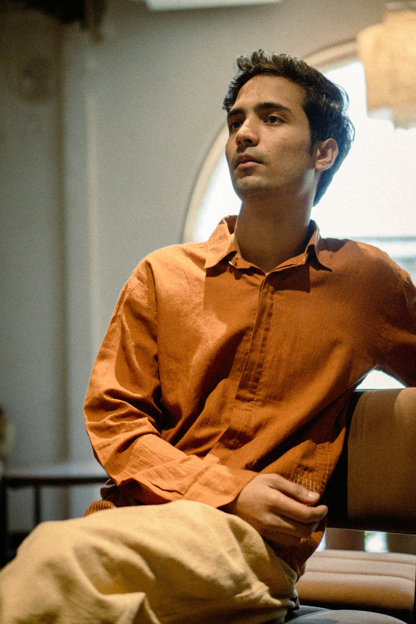 Crafted from 100% cotton fibers and natural materials, this 60s organic cotton Double Pocket Shirt comes in an earthy colour that that we call Mud Memories naturally dyed from Madder Root & Catechu. Elevate your style with a shirt that exudes texture and artistry featuring contrasting stitch lines on the hem section and pocket.