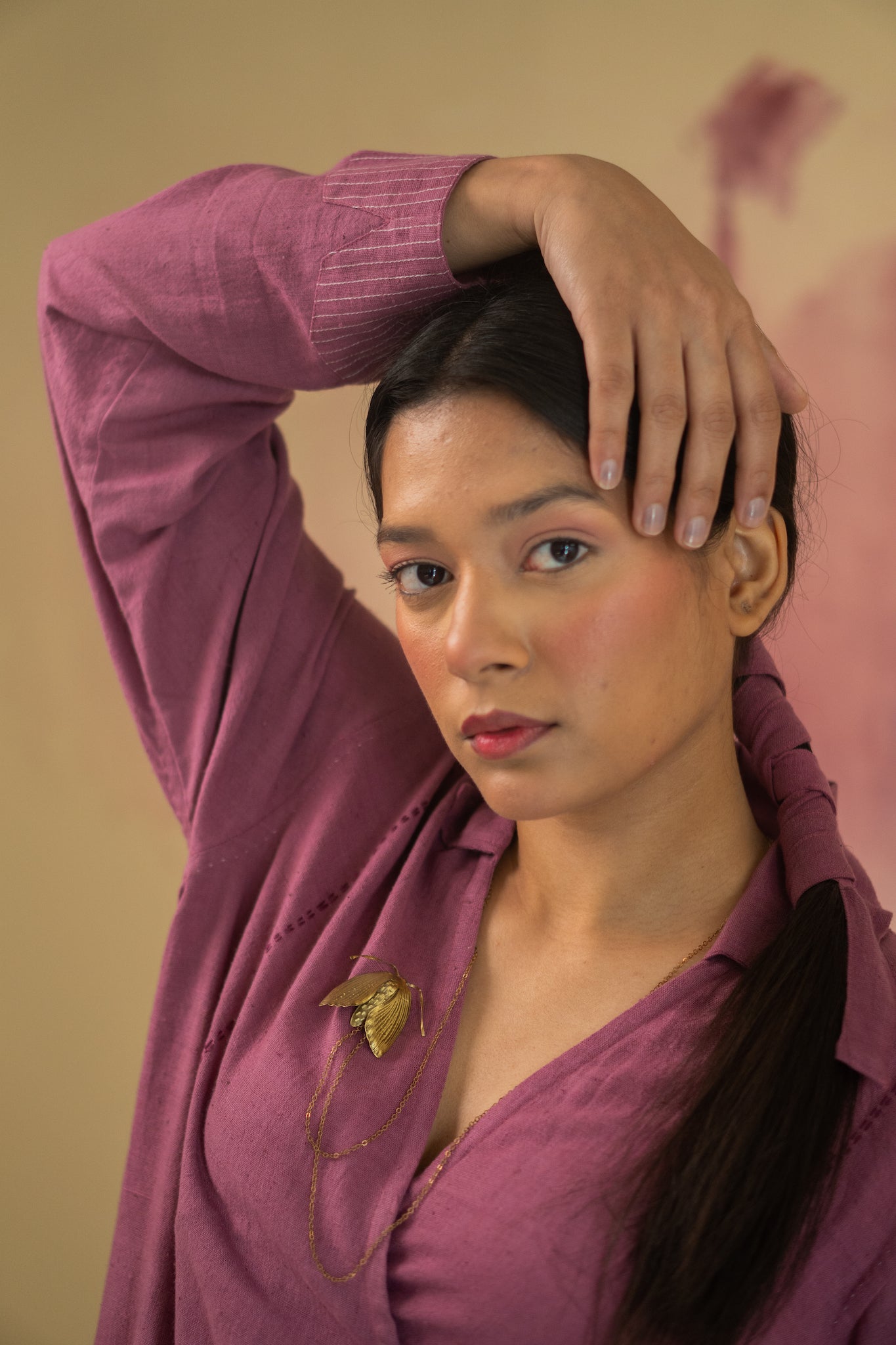Crafted from 100% cotton fibers and natural materials. This Kala Cotton Tie Up Overlay comes in a calm and soothing colour that we call Grape Harvest naturally dyed from a host of ingredients ranging from madder root to indigo.
